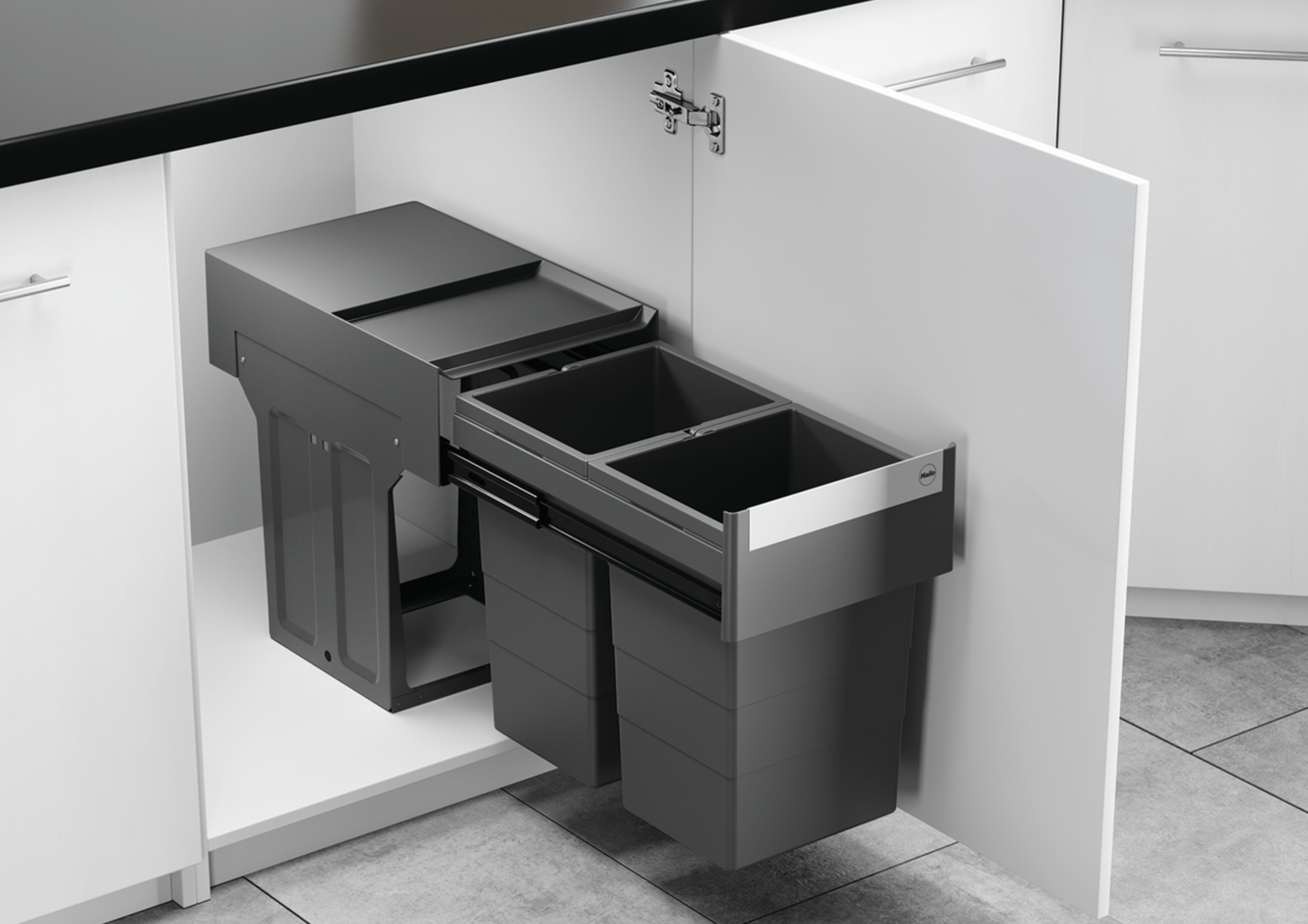 | Material: | Bin holder, mounting components and runners: Steel Lid, pail and grips: Plastic |